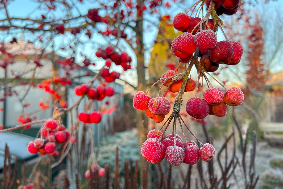 In de winter verliezen de meeste hun planten hun kleur en hult de tuin zich in vele tinten bruin. De meeste vaste planten, grassen en struiken hebben een mooi winterbeeld door hun silhouetten. Het tuingedeelte tussen het huis en de kas bevat veel wintergroene planten zoals varens, fatsia, bamboe en Portugese laurier.